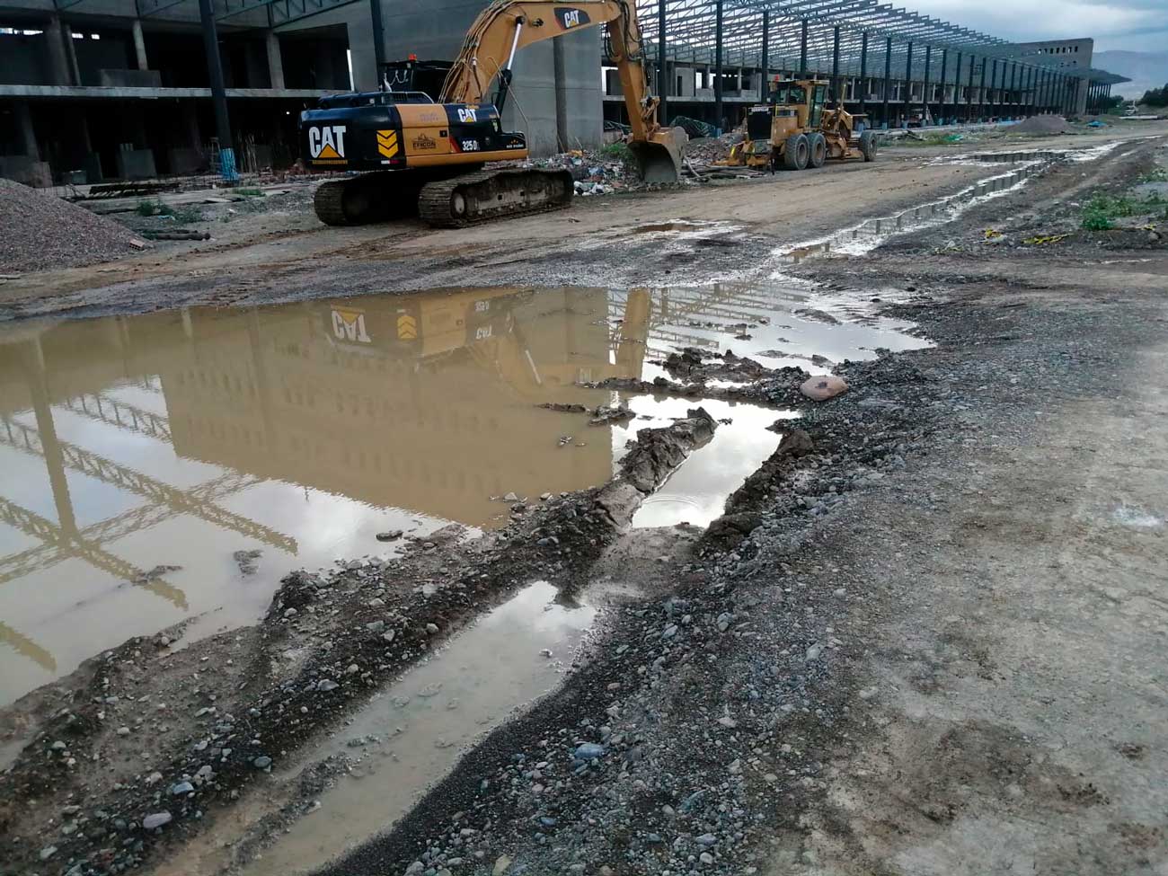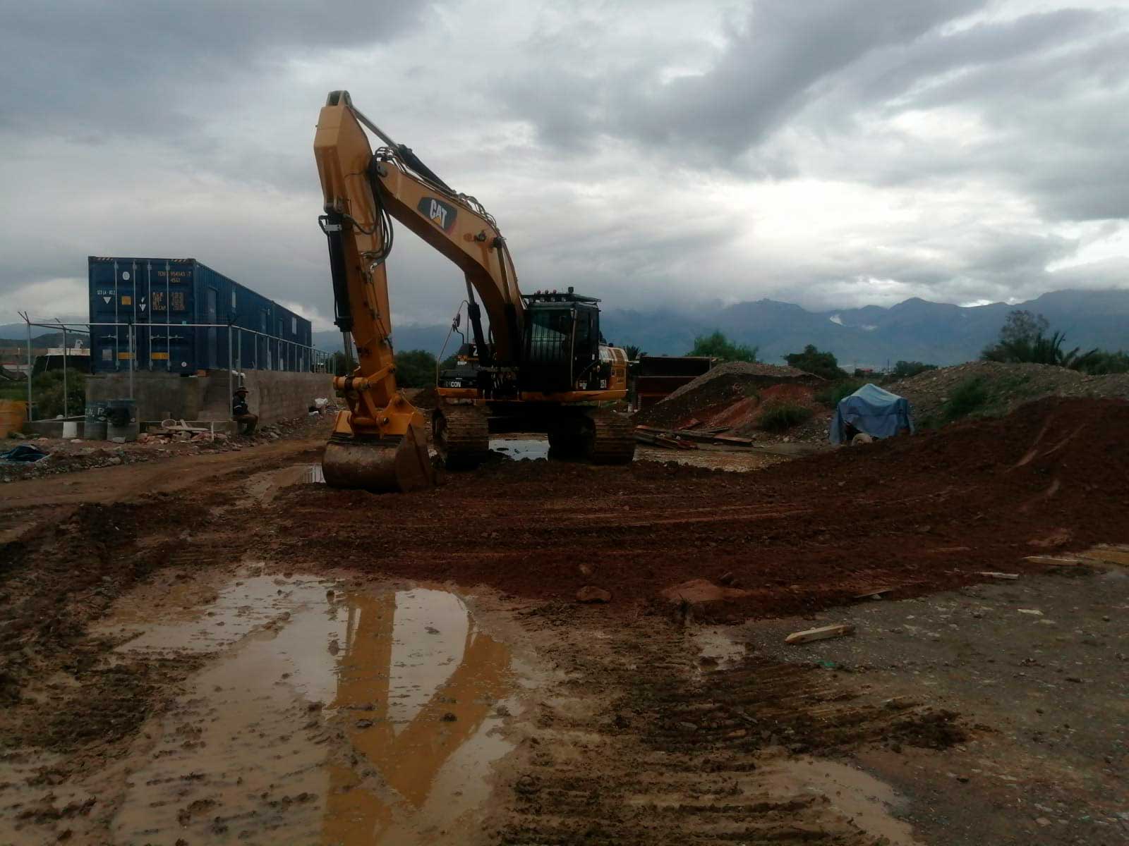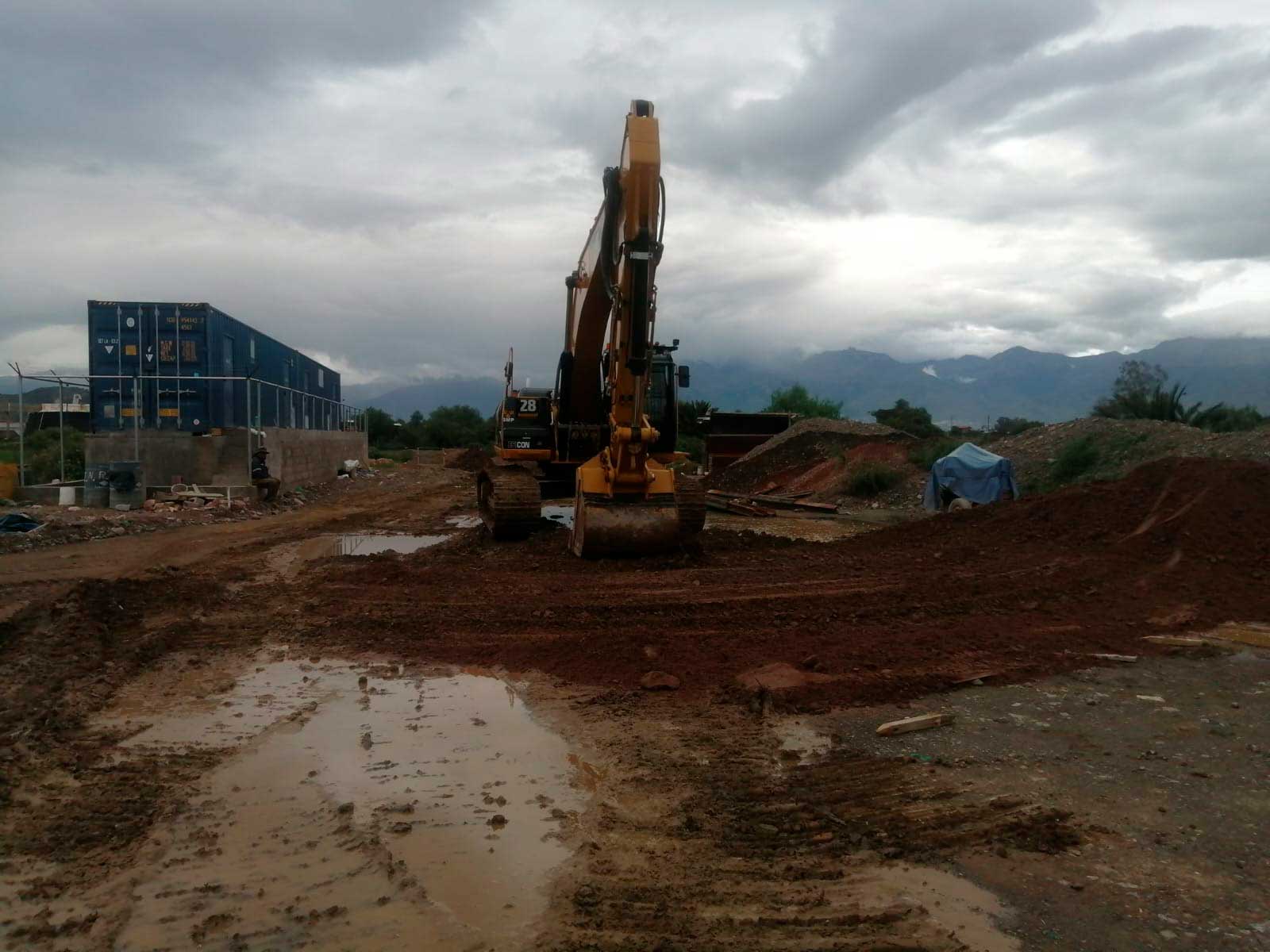 Alquiler de maquinaria pesada tipo excavadora para estabilización con pedraplén plataforma vía tren metropolitano y vías de acceso